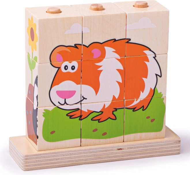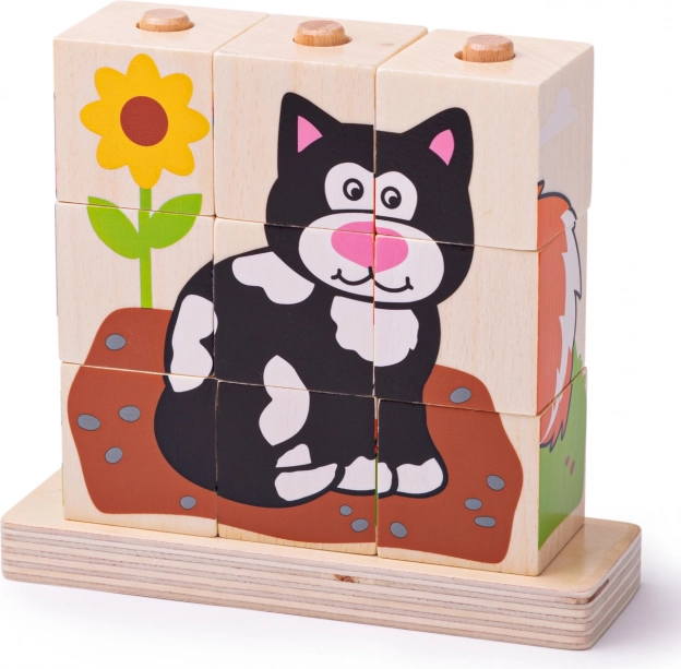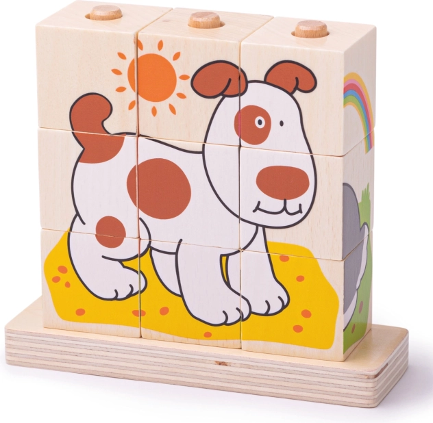 Devet kock sestavi štiri različne motive živalic, ki spodbujajo k ponovnemu sestavljanju ter razvijajo logično mišljenje in zaznavanje.