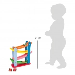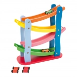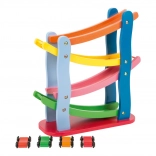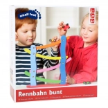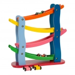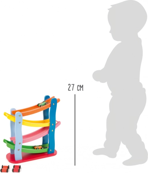 Lesena dirkalna steza za otroke je barvita igrača, ki nudi zabavo za dolge ure. Z barvitimi avtomobilčki otroci razvijajo motoriko in prepoznavajo barve, ko z veliko hitrostjo drvijo po trdnih lesenih tirih navzdol.
