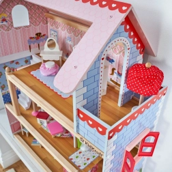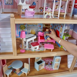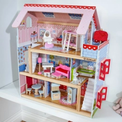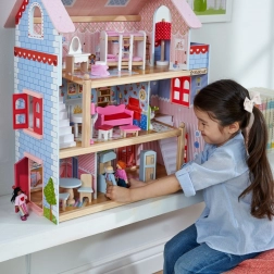 Hišica za punčke KidKraft Chelsea navduši z bogatimi detajli in premišljeno opremo. Tri nadstropja s petimi sobami in balkonom vabijo k odprti igri, medtem ko barviti dodatki in realistični elementi spodbujajo razvoj domišljije in fine motorike. Priloženih je 16 kosov pohištva za takojšnjo igro.