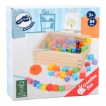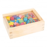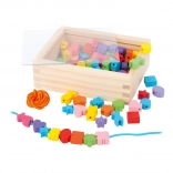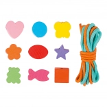 Majhni ustvarjalci se s tem lesenim kompletom lahko zabavajo ure in ure. Škatla vsebuje 81 barvnih kroglic in 2 vrvici, ki otrokom omogočata ustvarjanje raznovrstnega nakita po njihovih zamislih.