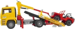 Bruder vlačilec MAN je idealna igrača za otroke, ki ljubijo simulacije in igranje z realističnimi modeli avtomobilov. Vozilo ponuja nagibno kabino, ki omogoča vpogled v motorni prostor, in je opremljeno s sprednjim steklom iz trpežnega polikarbonata. Za kabino je rotacijska manipulatorna roka s verigami za enostavno manipulacijo z jeepom.
