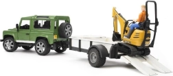 Prikolica s pregibnimi rampami omogoča enostaven prevoz rumenega mini bagra, ki je opremljen z vrtljivo kabino in delujočo roko z žlico. Mini bager je popolnoma združljiv z drugimi figurami Bworld, zaradi česar je popolno dopolnilo na vsakem otroškem gradbišču.