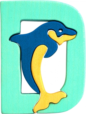 Lesena črka D z delfinom – izobraževalna vstavljanka