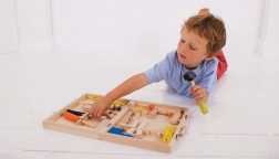 Pokažite svojim otrokom svet ročnih spretnosti z lesenim kovčkom z orodjem Bigjigs Toys. Ta kovček je zasnovan tako, da ima vsak kos orodja svoje mesto, kar olajša pospravljanje in prenašanje. Izdelan je iz visokokakovostnih materialov in izpolnjuje evropske varnostne standarde.