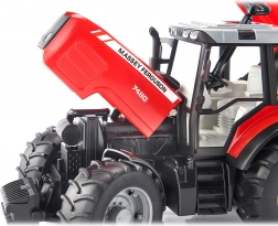 Uživajte v realistični igri na kmetiji s traktorjem MASSEY FERGUSON 7480 in prekucnim vozilom. Model v merilu 1:16 navdušuje s precizno izdelavo, funkcionalnim krmiljenjem, ki se upravlja s podaljšanim volanom preko strehe kabine, ter z odpirajočimi se elementi, ki omogočajo pogled pod pokrov in v kabino.