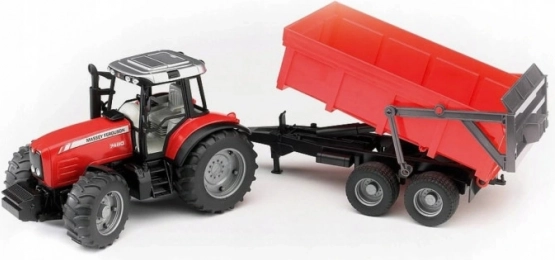 Bruder traktor MASSEY FERGUSON z nagibnim priklopnikom, rdeč