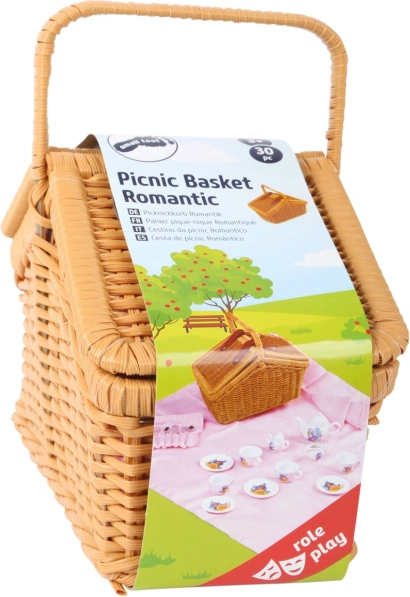 Romantično zasnovan piknik koš z opremo za štiri »goste« prinaša otrokom realističen občutek zunanjega pogrinjka. V košu najdete krožničke, skodelice s podstavki, pribor ter čajnik za kavo/čaj, posodico za sladkor in vrček za mleko. Zahvaljujoč čvrsti izvedbi iz umetnega protja in praktični razporeditvi je vse varno shranjeno ter pripravljeno za izlete v park ali na vrt.