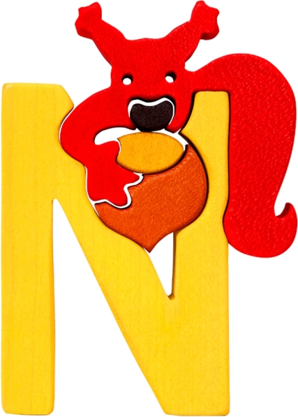 Vstavljanka s črko N in ljubko veverico je idealen pripomoček za predšolske otroke. Otroci se na zabaven način naučijo osnov abecede, urijo fino motoriko in prepoznavanje oblik. Deli zlahka in natančno sodijo skupaj, kar spodbuja uspeh in veselje do učenja.