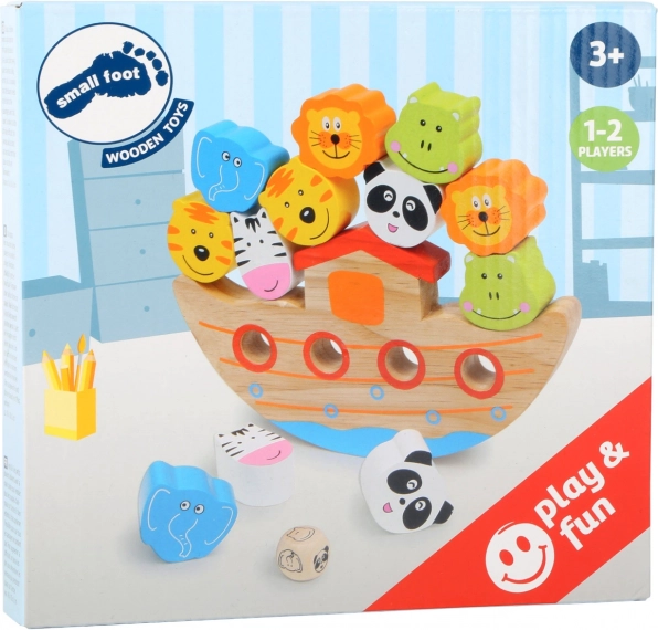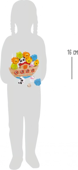 Zabavna spretnostna igra iz lesa, pri kateri otroci polagajo živalice na ladjo tako, da ostane v ravnotežju. Spodbuja fino motoriko, zbranost in potrpežljivost. Priložena je kocka, ki določi, katero žival dodati – ali pa igrajte brez nje za enostavnejšo različico.