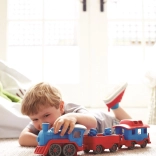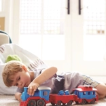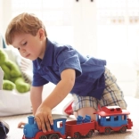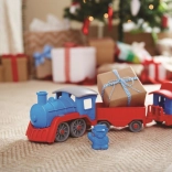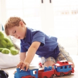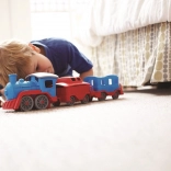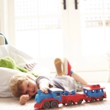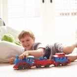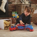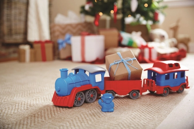Vsi na vlak! Ta robusten vlak znamke Green Toys z lokomotivo in dvema vagonoma prinaša ustvarjalno igro doma in na prostem. Izdelan je iz 100 % reciklirane plastike iz steklenic za mleko, ne vsebuje BPA, PVC in ftalatov ter nima kovinske osi ali zunanjega premaza. Priložena sta tudi dva medvedja sprevodnika, vsi deli pa se zlahka razstavijo in očistijo v pomivalnem stroju.