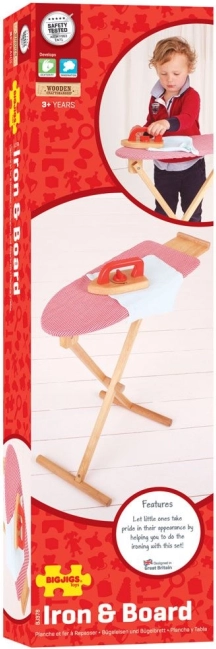 Otroci lahko preživijo ure igranja s to trdno in realistično leseno likalno desko in likalnikom.