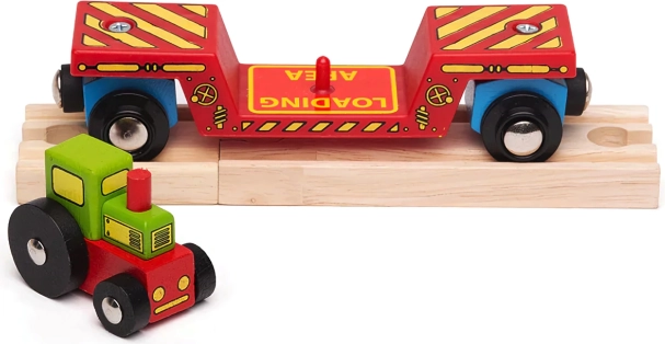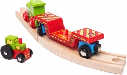 Ta barvit set prinaša v otroški železniški svet še več domišljije. Traktor lahko z vagončka snamete in ga uporabite pri igri na kmetiji ali pa ga s pomočjo nakladalne ploščadi naložite ter odpravite na pot po tirih. Zahvaljujoč magnetnim sklopnikom se vagonček hitro poveže z lokomotivo in drugimi vagoni, zato je razširitev obstoječe garniture vprašanje trenutka.