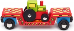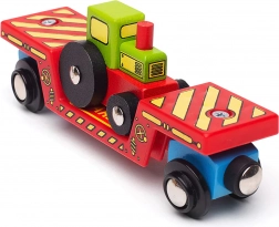 Traktor je mogoče uporabljati samostojno ali ga naložiti na težkotonski vagonček in se odpraviti na pot po tirih. Spodbuja domišljijo in tematsko igro.