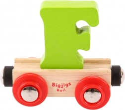 Ti vagoni niso zasnovani za vožnjo skozi tunele. Črke so na voljo v več barvnih različicah: rdeča, vijolična, oranžna, zelena, rumena in modra. Bigjigs Rail skrbi za doseganje evropskih varnostnih norm in ponuja igračo, ki spodbuja učenje in kreativno igro.