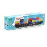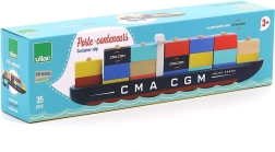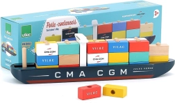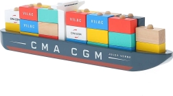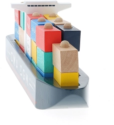 Ta dovršena lesena kontejnerska ladja prinaša realistično igro s kontejnerji na zatičih, ki jih je mogoče poljubno sestavljati, razvrščati in premikati. Otroci urijo koordinacijo oko–roka ter spoznajo osnove logistike in razvrščanja barv in oblik.