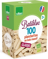 Klasična lesena sestavljanka iz naravnega masivnega lesa s 100 ploščicami razvija otroško domišljijo in fino motoriko. Priloženi so tudi gradbeni načrti. Kakovostna izdelava, izdelano v Franciji, idealno od 3 let.
