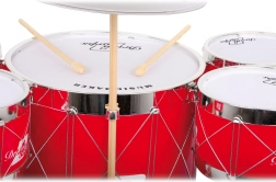 Set je zasnovan tako, da podpira naravni razvoj otrok: uri ritmični čut, koordinacijo rok in oči ter zbranost. Ognjeno rdeč dizajn motivira k raziskovanju glasbe in prinaša v otroško sobo energijo ter veselje.