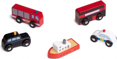 - 5 delov v paketu: gasilni avto, policijski avto, dvonadstropni avtobus, taksi, ladja.
