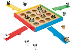 Mala in zabavna lesena igra, ki združuje napetost, spretnost in strategijo. Primerna za otroke od 4. leta dalje. Lesene miške različnih barv in štiri gugalnice čakajo na vaš natančen strel.