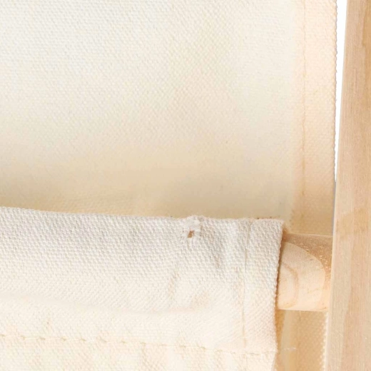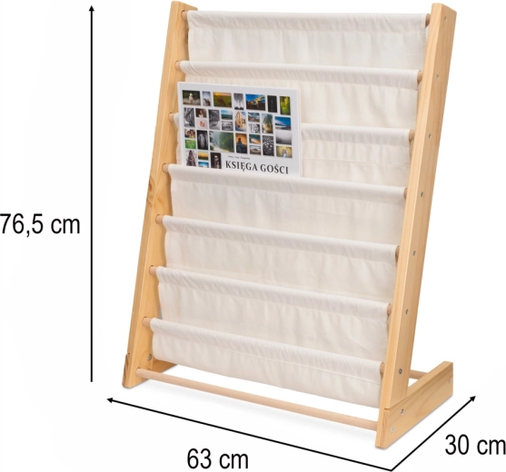 Polica je izdelana iz naravnega lesa in kakovostne bombažne tkanine, ima gladke robove in stabilno konstrukcijo za maksimalno varnost. Brezčasen videz v kombinaciji lesa in bele barve se poda vsakemu interierju ter podpira zdrave bralne navade in učenje reda.