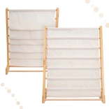 Elegantna in praktična lesena polica za knjige se zlahka vključi v vsako otroško sobo. Ponuja do 6 tekstilnih polic, ki nudijo dovolj prostora za knjige, barvanke in druge potrebe vaših otrok. Višina police je 76,5 cm, kar otroku omogoča, da brez težav doseže vse police.