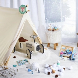 Zahvaljujoč gumiranim kolesom je vožnja tiha tudi na trdih podlagah, zato je poganjalec primeren tako za stanovanje kot za pločnik. Retro dizajn izstopa v vsaki otroški sobi in spodbuja domišljijo ter veselje do gibanja.