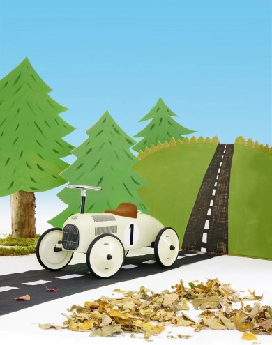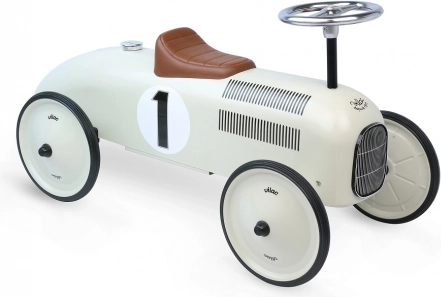 Stilski otroški poganjalec v videzu dirkalnega avtomobila navduši z retro šarmom in kakovostno kovinsko izdelavo. Ponuja tiho vožnjo zaradi gumiranih koles, preprosto upravljanje z volanom ter čvrsto konstrukcijo z nosilnostjo 20 kg – idealno za male dirkače od 1,5 leta naprej.