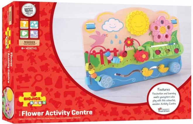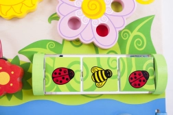 Lesena motorična plošča BIGJIGS BABY Rože prinaša pester svet aktivnosti, ki podpirajo naraven razvoj otrok od 6 mesecev dalje. Otroci lahko pomikajo račke po tirnici, vrtijo labirint in pomagajo pikapolonici, čmrlju ter metulju potovati po krogličnem labirintu gor in dol. Vsak element je zasnovan tako, da vabi k raziskovanju ter uri prijem in koordinacijo.