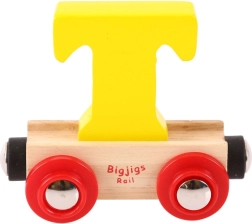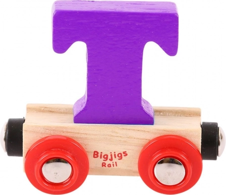 Leseni vagončki Bigjigs Rail s črko T v različnih barvah, kot so rdeča, vijolična, oranžna, zelena, rumena ali modra, so idealni za ustvarjanje lastnih imen ali drugih vlakov. Zahvaljujoč magnetnim spojnkam so združljivi z drugimi lesenimi vlaki na trgu. Ti vagončki so odlični za razvoj otrok ob različnih priložnostih, bodisi za praznike ali rojstne dni.