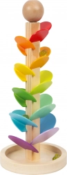 Lesena kroglična steza Small Foot vsako spuščanje kroglice spremeni v mali koncert. Ko steklena kroglica drsi po barvitih lističih, nastajajo toni od višjih do nižjih, ki spodbujajo slušno zaznavanje in otrokom prinašajo pomirjujočo ter zabavno izkušnjo. Robustna lesena konstrukcija s stabilno podlago in gladko površino je prijetna na dotik in pripravljena na vsakodnevno igro.