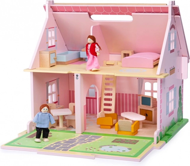 Prenosna lesena hišica za punčke Bigjigs Toys