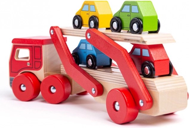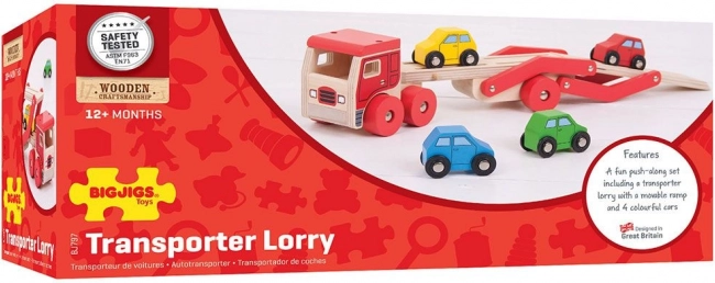 Bigjigs Toys otrokom prinaša neskončno zabavo z lesenim tovornjakom z avtomobili, ki ne nudi le ur igre, temveč tudi spodbuja razvoj koordinacije rok in oči. Zgornji del prikolice je mogoče zlahka spustiti, kar omogoča enostaven vzpon in spust malih vozil.