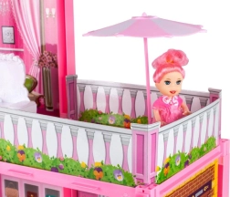 Hišica ponuja prostoren balkon s senčnikom – idealen prostor za počitek punčke in druženje na prostem. Odlično za ustvarjanje zgodb in prizorov iz vsakdanjega življenja.