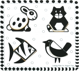 Črno‑bele vstavljanke BIGJIGS TOYS so posebej zasnovane za dojenčke in malčke, ki najbolje reagirajo na visok kontrast. Štiri robustne lesene oblike se vstavljajo v ploščo z ilustriranimi motivi živali, kar otroke spodbuja k ponovnemu poskušanju in naravno krepi koordinacijo oko–roka.