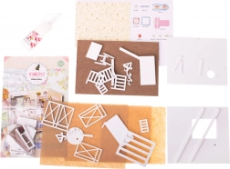 V paketu dobite vse potrebno: gradbene dele sobice, elemente opreme in dekoracije, lepilo ter podroben slikovni priročnik. Osvetlitev napajata 2× AAA 1,5 V in 3× LR54 1,5 V (baterije niso priložene). Priporočeno od 8 let. Končni model meri 17,1 × 13 × 11,6 cm; pakiranje 25 × 18 × 6 cm.