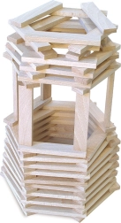 Ta brezčasna lesena sestavljanka otrokom ponuja neskončne možnosti ustvarjanja – od stolpov in mostov do izvirnih arhitekturnih modelov. Enotne mere kosov (10,5 × 2 × 0,7 cm) omogočajo stabilne konstrukcije brez potrebe po spojnih elementih. Zaradi naravne izvedbe je igra ne le zabavna, temveč tudi poučna.