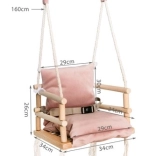 Stilska otroška gugalnica za otroke od 12 mesecev z mehkimi blazinami iz materiala CLEANABOO, ki ne vpija tekočin. Varna lesena izvedba z zaobljenimi robovi, trdnimi vrvmi in varnostnim pasom za udobno in mirno guganje doma.