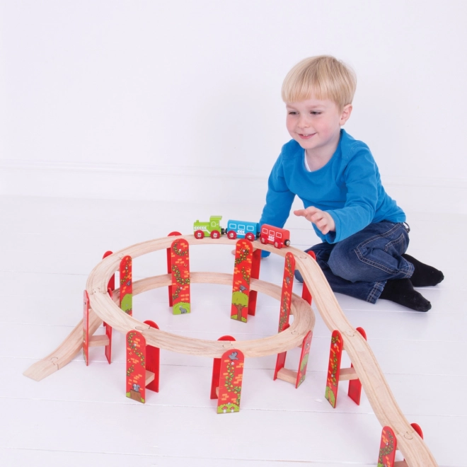 Predstavljamo vam Bigjigs Rail večnivojno leseno železniško gradbeno igračo – idealno za razvoj otroške ustvarjalnosti in motoričnih spretnosti. Zahvaljujoč kakovostnim in odgovorno pridobljenim naravnim materialom ta garnitura obljublja ure zabave in je združljiva z vsemi drugimi lesenimi železnicami na trgu.