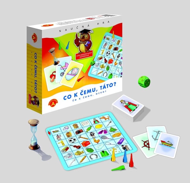 Igra »Za kaj je to?« prinaša tri stopnje težavnosti, ki se prilagodijo starosti in izkušnjam igralcev. Naloga je iskati povezave med slikami na igralni plošči in kartah, kar krepi otrokove sposobnosti na področju logike in spoznavanja.