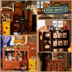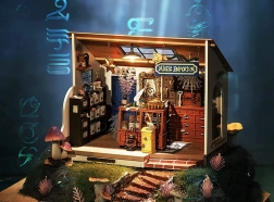 Vdahnite življenje prikupni trgovinici čarovnice Kiki in uživajte v urah ustvarjanja. Model v merilu 1:20 prinaša realistične prizore s pultom, poličkami in skrivnostnimi artefakti. Zahvaljujoč LED osvetlitvi diorama po mraku dobi edinstveno atmosfero in postane središče pozornosti v vašem interierju.