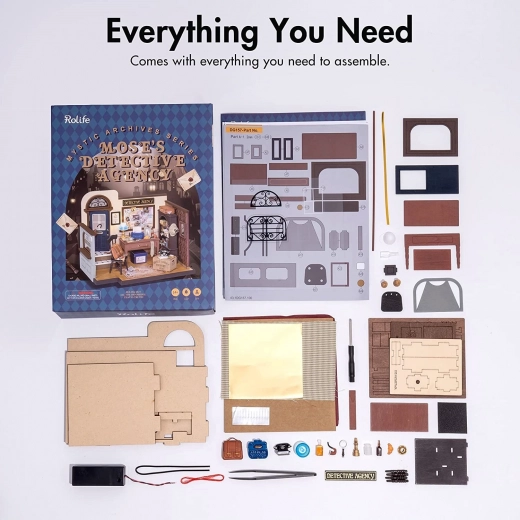Ustvarite svojo mini detektivsko pisarno v britanskem slogu iz serije ROBOTIME ROLIFE Mystic Archives. Ta podrobna DIY sestavljanka ponuja LED osvetlitev, mnogo realističnih dodatkov in lažje sestavljanje zaradi večjega deleža že pripravljenih delov. Idealno kot darilo, za kreativno sprostitev in stilno dekoracijo interjerja.