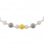 Ta univerzalna prečka za voziček združuje vrtljive kroglice in cvetlične oblike, ki podpirajo razvoj fine motorike, vida in sluha. Različne površine in barve vzbujajo radovednost, medtem ko diskretno rožljanje dojenčka pomirja in zabava med sprehodi.