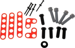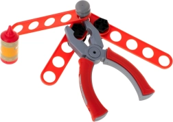 V kompletu so vijaki, matice, žeblji, žagica, ključi, izvijač, kladivce, klešče in spojke – vse za realistično in ustvarjalno igro.