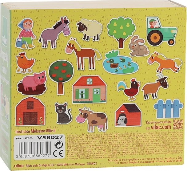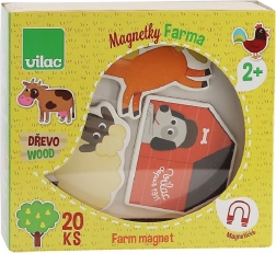 Ta priljubljen komplet otrokom ponuja zabavno spoznavanje življenja na kmetiji. Leseni magnetki so čvrsti, prijetni na otip in zaradi kakovostnega tiska lepo barviti. Primerni so za prosto igro, pripovedovanje zgodb in prvo spoznavanje živalic.