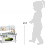 Kuhinijca je izdelana iz 100% FSC lesa, zato z igro podpirate trajnostno gospodarjenje z gozdovi. Eleganten dizajn v nevtralnih barvah se poda v vsak interier, preprosta montaža pa omogoča enostaven prenos ali pospravljanje.