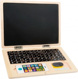 Ta lesen prenosni računalnik nudi interaktivno in izobraževalno izkušnjo za otroke. Opremljen je s premičnimi deli s črkami, številkami in znaki, ki jih je mogoče enostavno premikati na magnetni tabli in tako tvoriti različne besede ali reševati matematične naloge. Poleg tega je tu tudi kreda del, kjer lahko otroci rišejo in pišejo ter z enostavnim brisanjem gobice vse enostavno odstranijo.