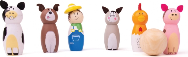Otroci obožujejo igro z lesenimi keglji kmetija, ki jih vedno znova vabijo, da jih podirajo in ponovno postavljajo. Ta barvit komplet je idealen za igro z družino ali prijatelji. Ima robustno konstrukcijo zaradi uporabe kakovostnega lesa in izpolnjuje vse evropske varnostne standarde.