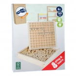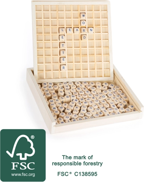 Ta lesena igra je odlična pomoč za razvoj jezikovnih spretnosti. Igralna deska ima pripravljena okenca, v katera lahko postavite kocke s črkami, kar zagotavlja njihovo varno nameščanje med igro.
