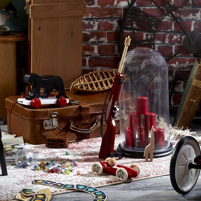 Postanite mali kavboj s to elegantno leseno puško VILAC! Set vsebuje puško na elastike, 20 elastik in 6 mini pločevink za zabavno in varno streljanje. Odlična igra za natančnost, razvoj motorike in tekmovalnega duha za otroke od 5 let dalje.