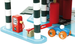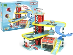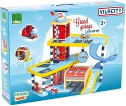 Velika lesena garaža VILAC Vilacity je popolno središče mestnega prometa za vse male dirkače. Zahvaljujoč premišljenim mehanskim podrobnostim, kot so delujoče dvigalo, zapornica in avtopralnica, otroci razvijajo fino motoriko, domišljijo in logično mišljenje. Set vsebuje dva avtomobilčka in helikopter, zato se igra lahko začne takoj po sestavi.
